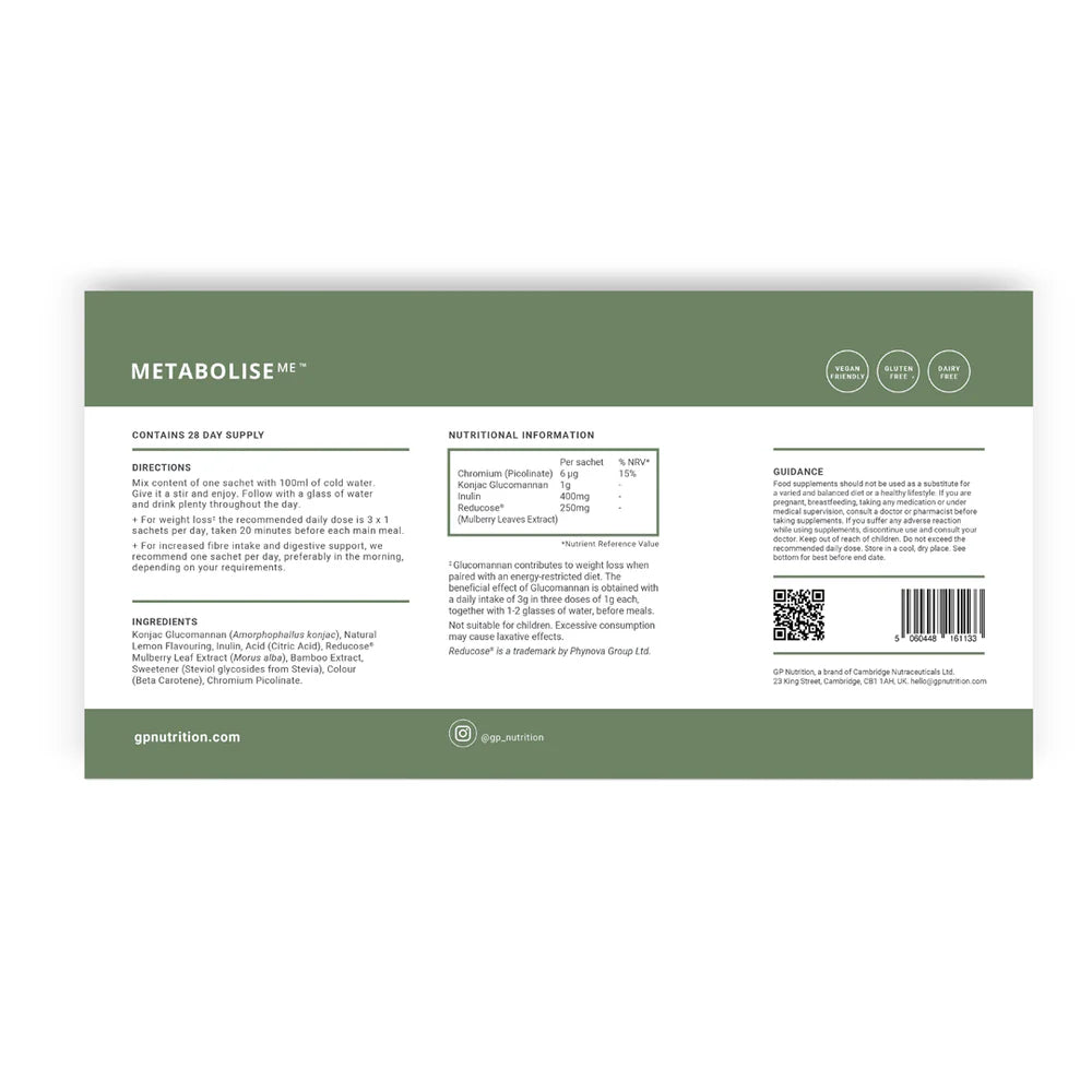 „Glukomanan mě nadchl – je nejen neuvěřitelně účinný pro zdravé hubnutí, ale je také jedinou složkou svého druhu se schváleným zdravotním tvrzením. Přidala jsem klinicky zkoumaný extrakt z listů moruše a chrom, které pomáhají vyrovnávat a udržovat normální hladinu cukru v krvi. MetaboliseMe je skutečně jedinečný a navržený tak, aby vám pomohl zvládat chutě a cítit se co nejlépe.“ – Gabriela Peacock
